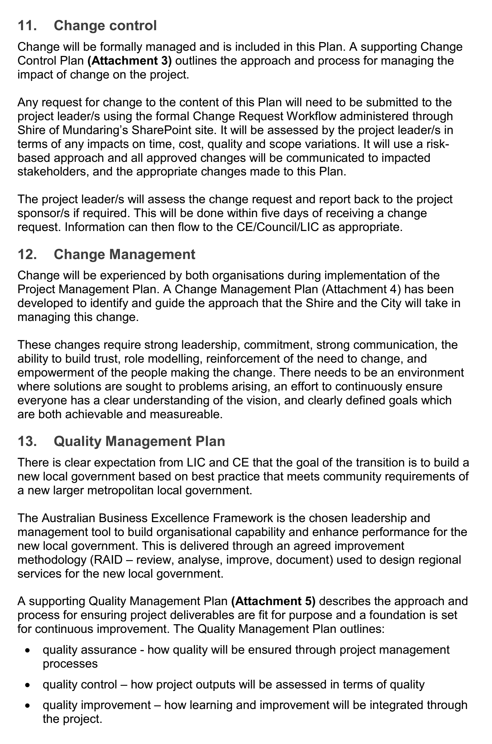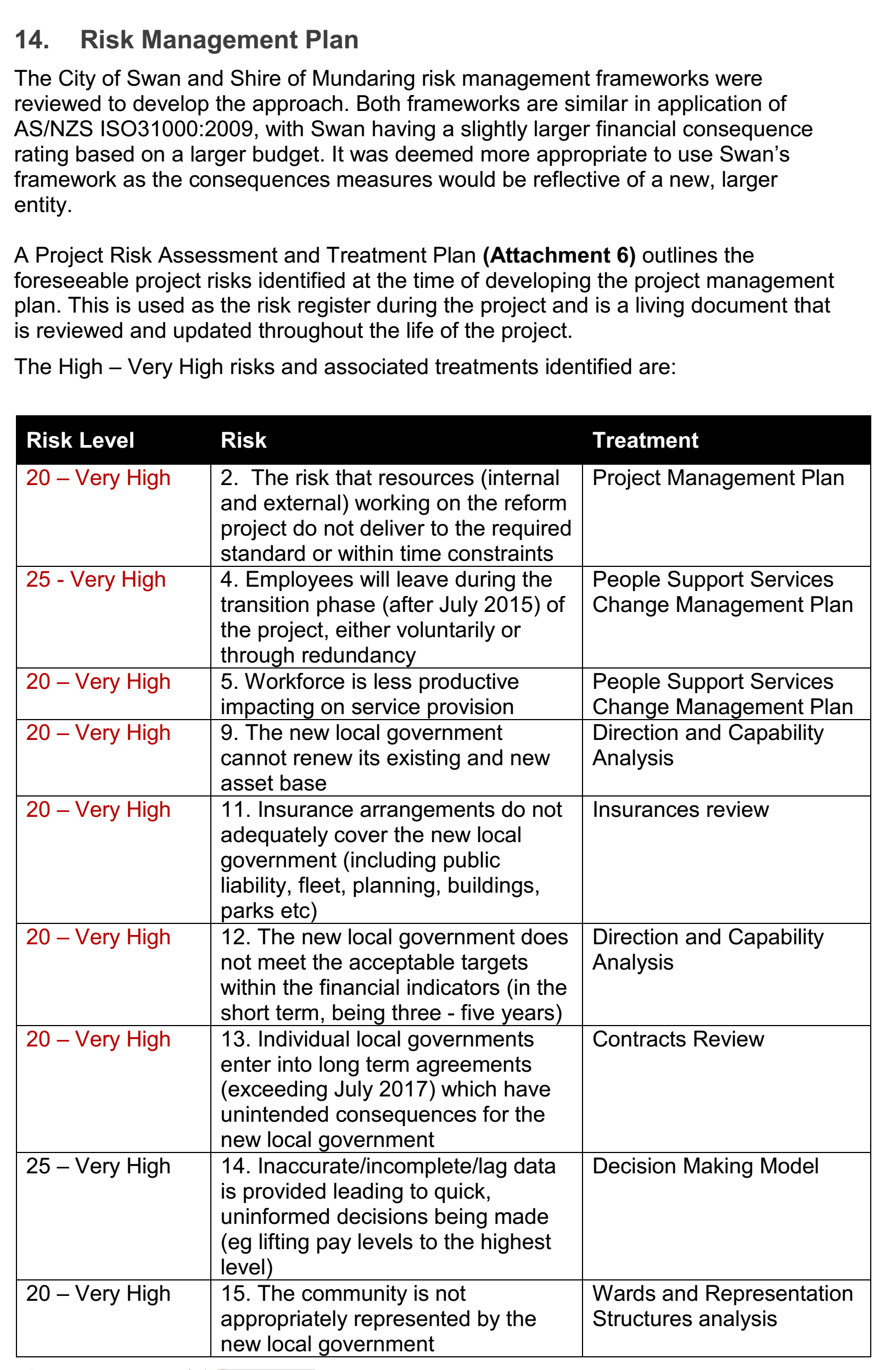 Appendix. Swan Mundaring Reform Project Management Plan 13