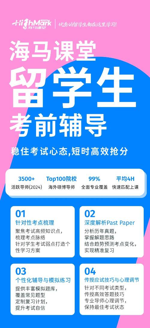若遇到?jīng)]有 Past paper 可供參考的科目,不必過于慌張??梢钥紤]尋找考前突擊輔導(dǎo),一般 7 小時(shí)左右的輔導(dǎo)課程,老師會(huì)帶領(lǐng)學(xué)生梳理重點(diǎn)知識(shí)并講解 Past paper,幫助學(xué)生在短時(shí)間內(nèi)把握考試要點(diǎn),從而在考試中取得較為理想的成績??傊?,考前一周要合理規(guī)劃時(shí)間,高效利用復(fù)習(xí)資料,以最佳狀態(tài)迎接考試。