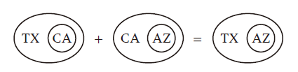 我們如何提取出保證(3)中論證有效性的東西?一個策略是通過分析其中“大于”關系的固有性質。因為無論A,B和C是什么,如果A大于B,并且B大于C,則A將大于C。最后一步是用“Texas”,“California”和“Arizona”替換A,B,和C。