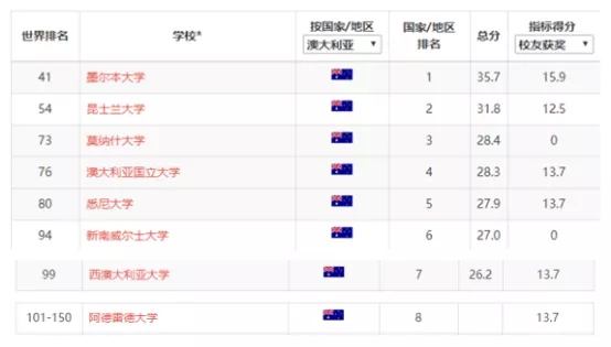 澳洲排位第一的是墨爾本大學(xué),“八大”中有七所高校都進入了全球Top100。除了大家熟知的“八大”以外,科庭大學(xué)和迪肯大學(xué)竟然緊隨其后,并非大家更熟知的皇家墨爾本理工大學(xué)或者悉尼科技大學(xué)。