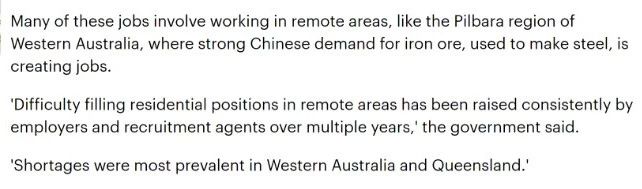 其中不少工作機會要到偏遠地區(qū),比如西澳的Pilbara等等一些不少與中國合作的工程項目。