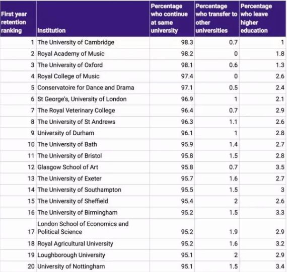 通過(guò)率排名前20的英國(guó)大學(xué)