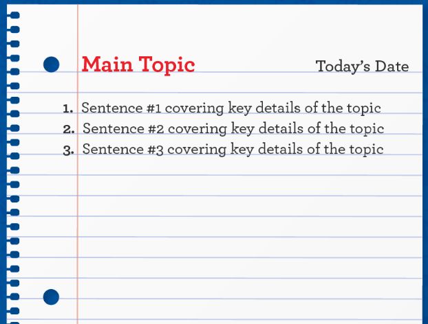 這種筆記法只需要學(xué)習(xí)者寫下一個(gè)主話題,然后在主話題下迅速記錄知識(shí)要點(diǎn)即可。適用于覆蓋大量信息的快節(jié)奏課程。